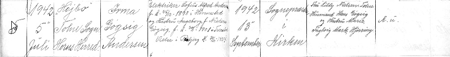 Irma blev født 1942-07-05 i “Højbo” i Tolne.