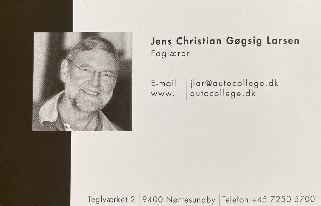 Jens Christians visitkort fra da han var faglærer i Ålborg