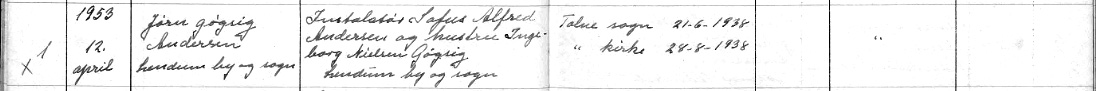 (A15). Jørn Gøgsig Andersen (f. 21. juli 1938 – d. 1. februar 2024) blev i den 28. marts 1964 gift i Volstrup kirke med Gerda Margrethe Jørgensen (f. 28. september 1943).