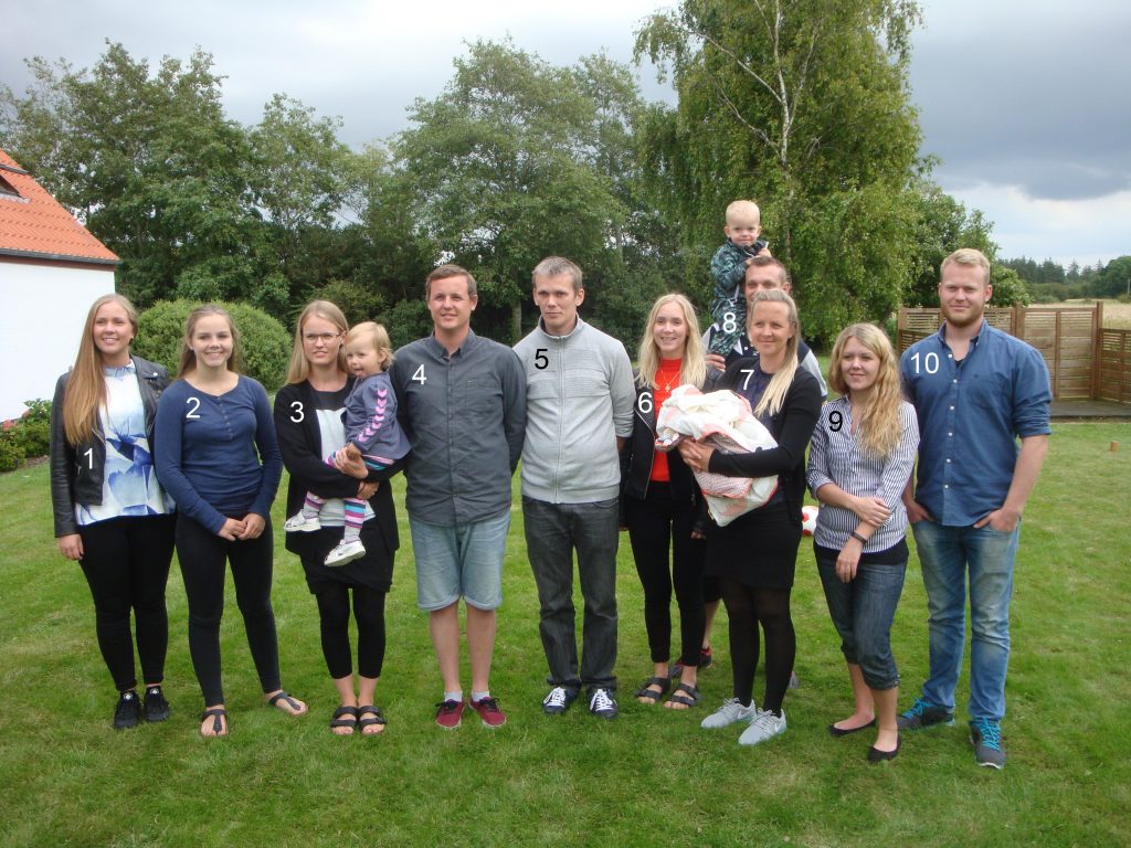 Jyttes 90 års fødselsdag. 1 Emil Gøgsig Johansen, søn af Pauline og Kim Johansen – de er nu skilt, 2 Mikkel Gøgsig Johansen, søn af Pauline og Kim Johansen – — , 3 Cathrine Gøgsig Larsen, datter af Troels og Marianne – de er nu skilt , 4 Peter Gøgsig Randrup, søn af Jane og Erik Randrup, 5 Marianne Gøgsig ?, datter af Annette og Erik Holmsberg, 6 Sofie Gøgsig Holmsberg, datter af Annette og Erik Holmsberg, 7 Lærke Gøgsig Holmsberg, datter af Annette og Erik Holmsberg, 8 Christian Gøgsig Holmsberg, søn af Annette og Erik Holmsberg, 9 Signe Gøgsig Randrup, datter af Jane og Erik Randrup, 10 Morten Søndergård, søn af Torben og Elsebeth Søndergård, – de er nu skilt, 11 Marie Gøgsig Grau, datter af Jørgen Gøgsig Søndergård og Hanne Grau 12 Laura, datter af Signe og Daniel, 13 Rosa, datter af Signe og Daniel, 14 Sia, datter af Marianne og Christoffer, 15 Jytte Paula Gøgsig Larsen, 16 Kjeld Larsen.