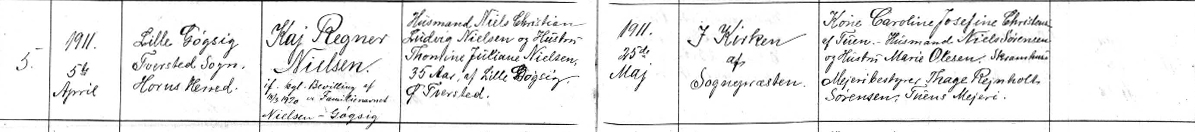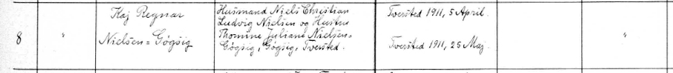 Navneændring: Kaj Regner Nielsen fik den 18. marts 1920 kgl. bevilling på navnet Kaj Regner Nielsen-Gøgsig. Han var på det tidspunkt 9 år gammel.