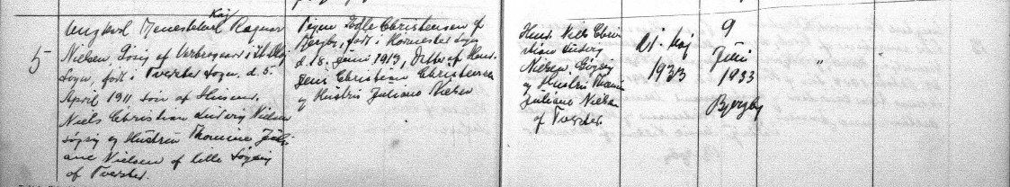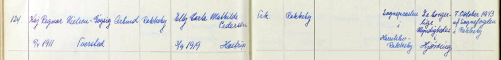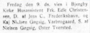 (A07). Kaj Regner Nielsen-Gøgsig (f. 5. april 1911 – d. 20. august 1982) blev fredag den. 9. juli 1933 gift med Edle Christensen (f. 18. juni 1913) i Bjergby kirke. Kaj og Edel bliver skilt den 22. juni 1943.