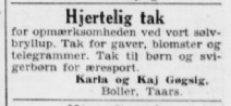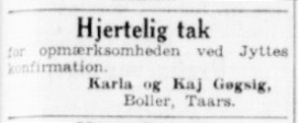 Kaj Gøgsig Boller Tårs havde i 1947 en annonce i Vendsyssel tidende hvor han solgte spise og lægge kartofler.