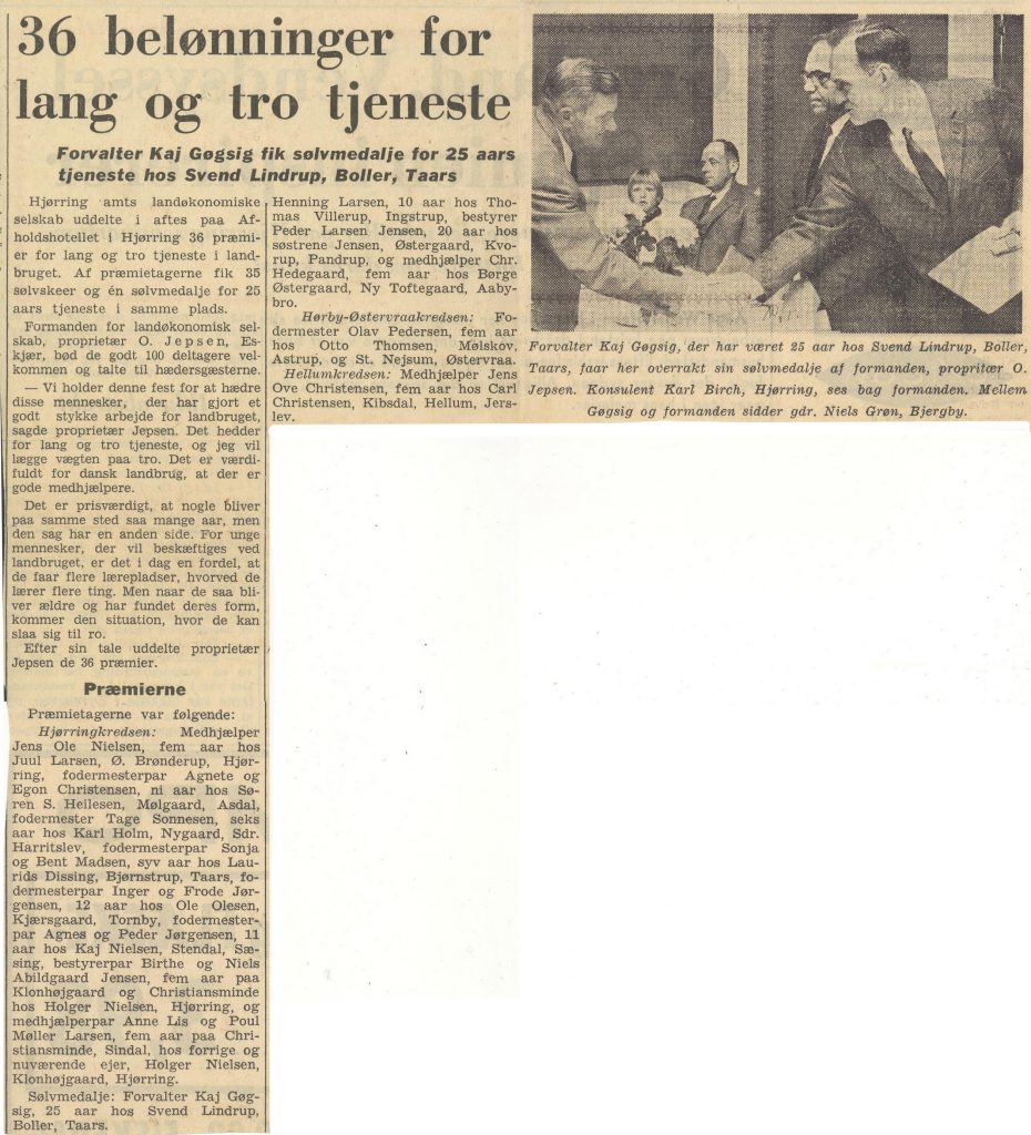 Forvalter Kaj har livet igennem været en flittig og dygtig mand. På Boller Hovedgård fik han i 1968 sølvmedalje for 25 års lang og tro tjeneste hos Svend Lindrup, Boller.