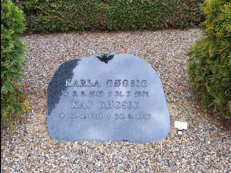 Karla og Kajs gravsten på Vodskov kirkegård.