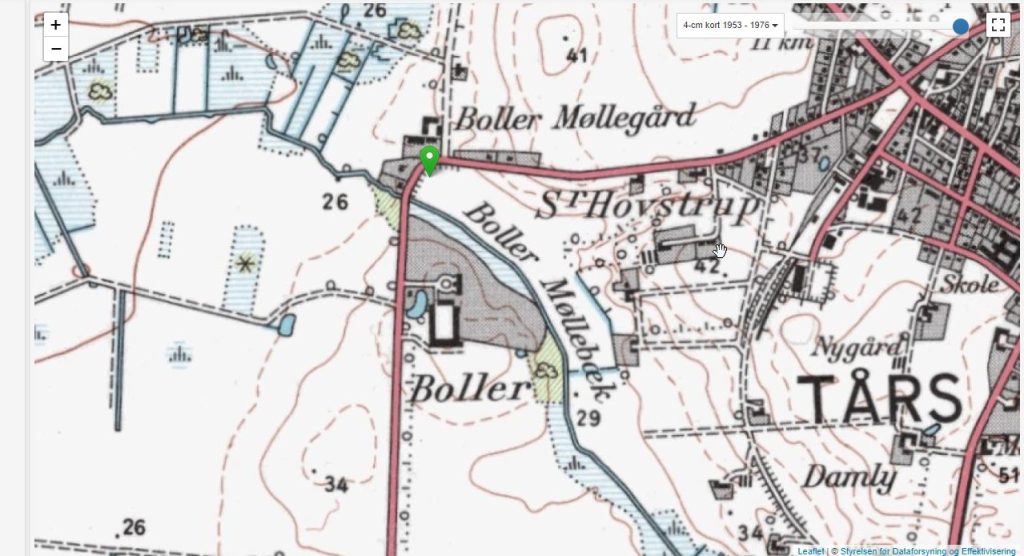 Boller Møllehus ligger ned til Boller Møllebæk, der hvor vejen svinger ind mod Tårs by.
