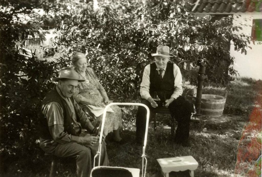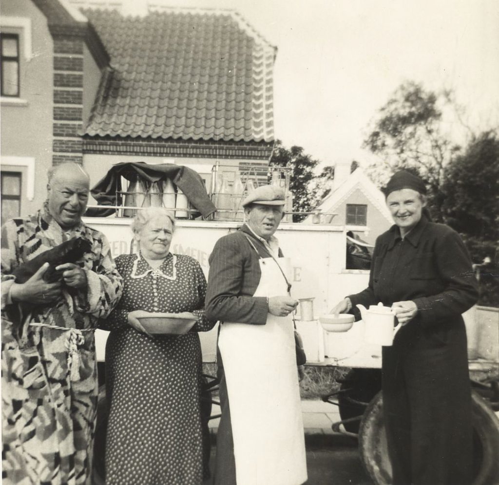Der var somme tider indlogeret sommerhusgæster i Karolines stue på 1. sal. Her er det hr. og fru Salamonsen der er med ude og købe mælk hos mælkevognen.