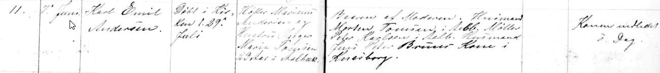 Emils forældre Inger Marie Thomsen (født den10. februar 1860) og Marius Andersen (født den 8. oktober 1847). Det vides ikke hvem de to børn er.