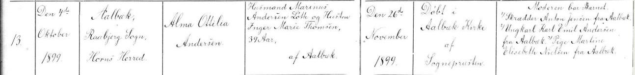 Alma Ottilie Andersen født den 4. oktober 1899.