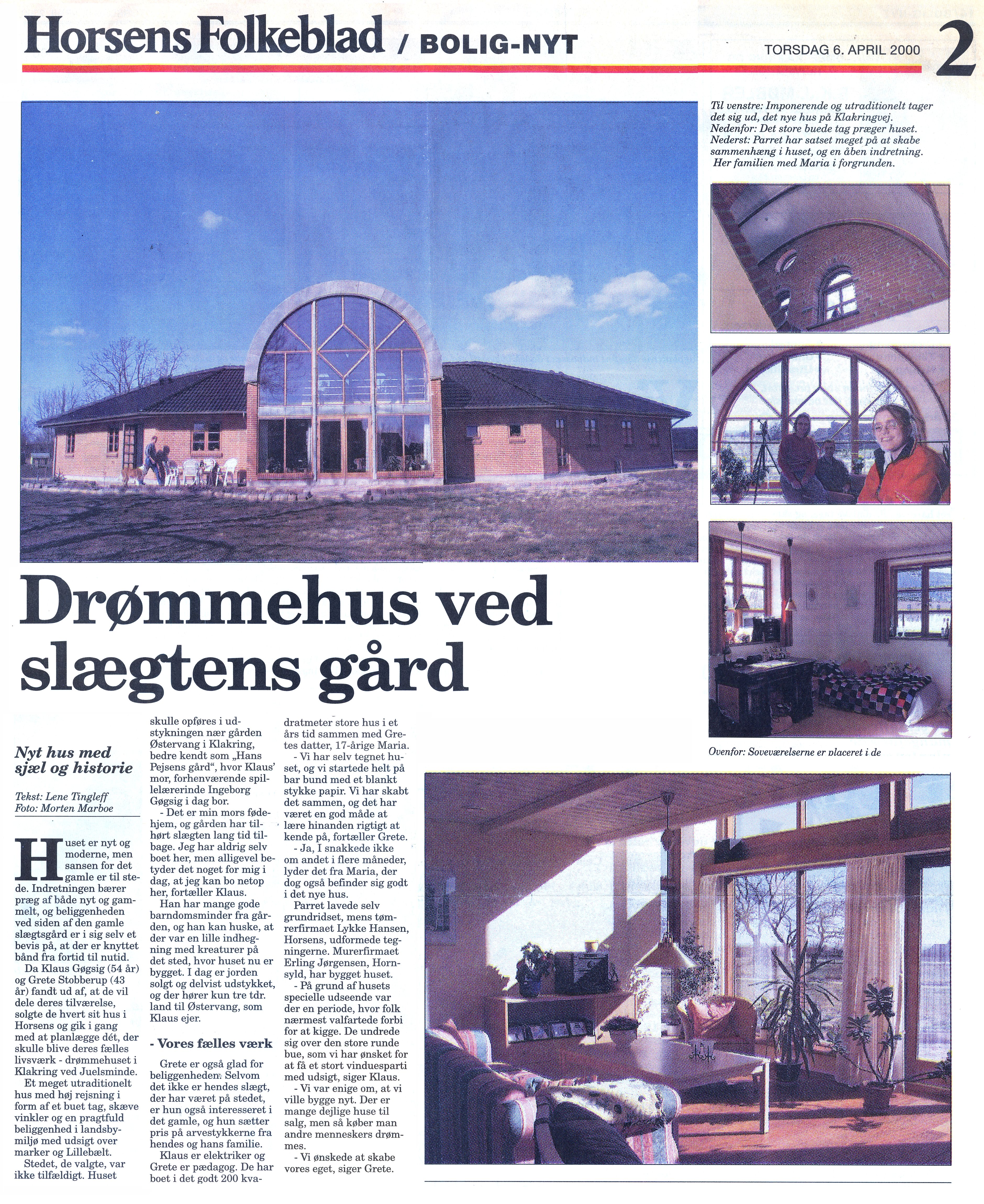 Huset (Rosenvænget 65, Klakring, 7130 Juelsminde) som Klaus stadig bor i, blev der råd til da kommunen lagde marken om til byzone. Byen var efterhånden kommet så tæt på at der var gadelys på 3 sider af marken. Resultatet af en forhandling med kommunen resulterede i en ok pris for jorden.