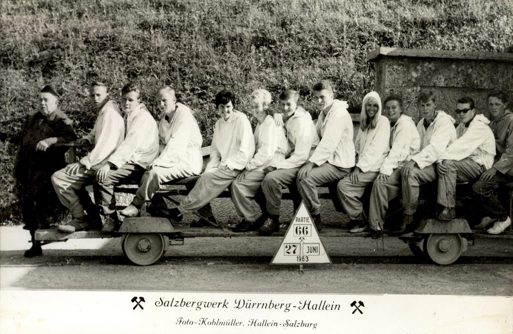 Den 27.6.1963. Klaus Gøgsig Nielsen er forreste mand på vognen fra venstre.
