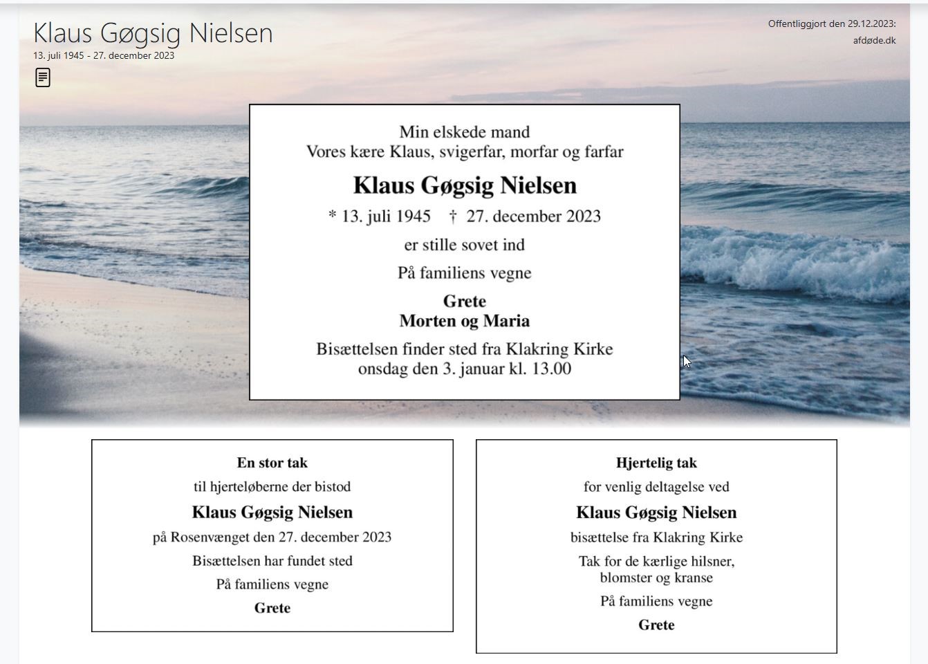 Klaus Gøgsig Nielsen døde den 27. december 2023.