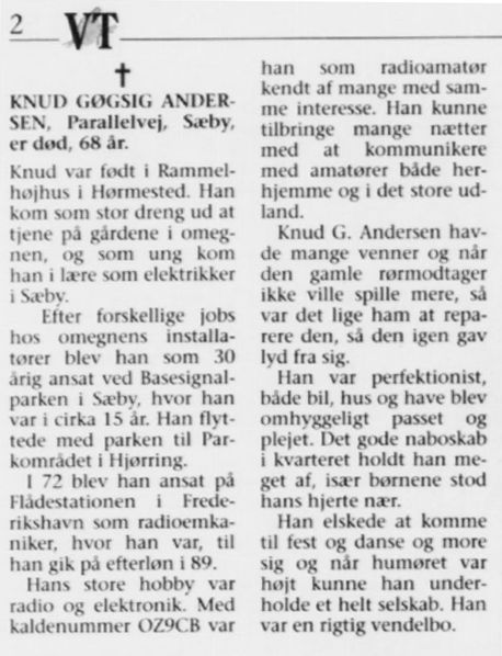 Knuds store interesse var radioer og mekanik. Som radioamatør indrettede han et kontor med alskens udstyr i huset på Parallelvej og kommunikerede med mange radioamatører både herhjemme og i udlandet. OZ9CB kalder!