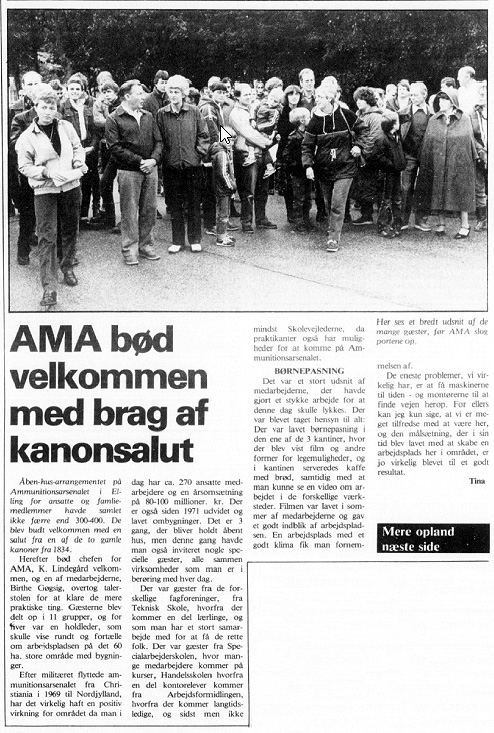 I 1983 var der et åben-hus-arrangement for de ansatte og deres familiemedlemmer på Ammunitionsarsenalet. Efter velkomsttalen af chefen overtog Birthe talerstolen for at klare de mere praktiske ting.
