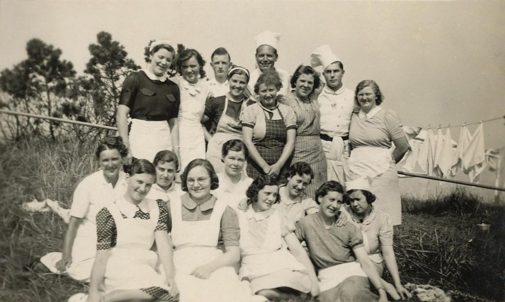Selv om Christa kun havde et meget lille værelse uden bad, så kom Lene til at sove inde på Christas værelse. Det var nok noget med at Christa skulle passe på Lene. For de andre havde jo deres egne værelser. Lene var stuepige, så det omfattede alt på nær madlavning, opvask og tøjvask. Det var kort sagt alt det der havde med gæsterne at gøre, fra at gøre rent, dække borde, servere og skifte sengetøj på værelserne. Dagen startede ved 6 tiden med et frisk bad i Vesterhavet. Hvis ikke man kom ned at bade så skulle man betale til en bødekasse. Lene har altid været rimelig påholden, så hun var ude at bade i havet hver morgen. Så tilbage til hotellet for at klargøre morgenmaden til hotellets gæster. Bordene var blevet dækket aftenen før.