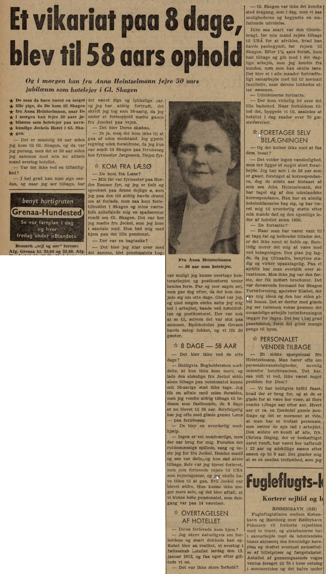• Inga Gøgsig Andersen (f. 1932): var barnepige på Jeckels Hotel i Gl. Skagen