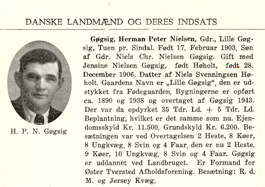 Teksten er hentet fra bogen “Danske landmænd og deres indsats” fra 1945