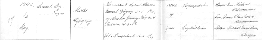 (G12). Mads Gøgsig (f. 13. maj 1946) blev den 22. marts 1975 borgerligt viet med Karen Langhoff Nedergaard (gift Gøgsig) (f. 18. juli 1949).