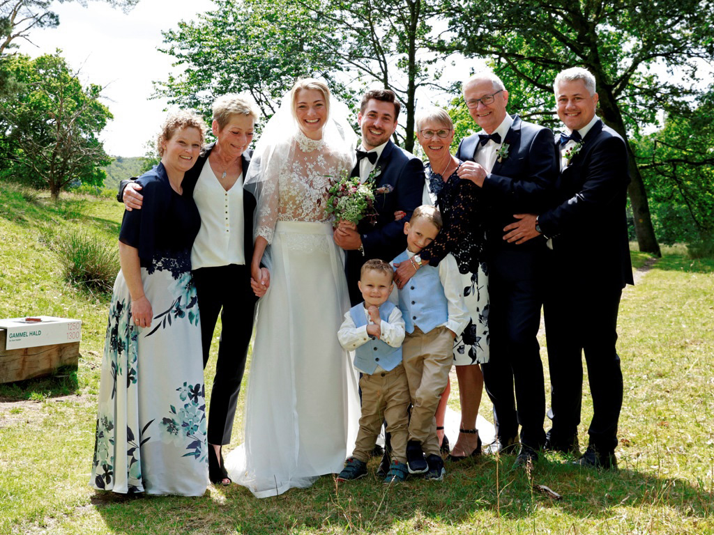 Fra Sofias og Ebbes bryllup 2020. Debbie, Anni Feldtmann, Sofia, Ebbe, Karen, Mads, Rune og så de to små Victor & Thomas.