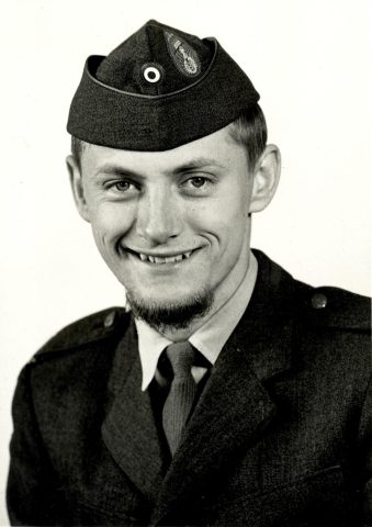 Min Værnepligt: Jeg har aldrig været meget for krudt og kugle, endskønt jeg har leget meget røver og soldater der hjemme i købmandsgården, så jeg valgte at aftjene min værnepligt hos Civilforsvaret. Jeg aftjente værnepligt på CF-kasernen i Thisted fra den 5. februar 1968. Det var ikke det store problem at komme frem og tilbage mellem Thisted og Sindal, jeg havde jo det grønne lyn (Austin). Så snart jeg havde fri om weekenderne, så kørte jeg hjem til Karen.