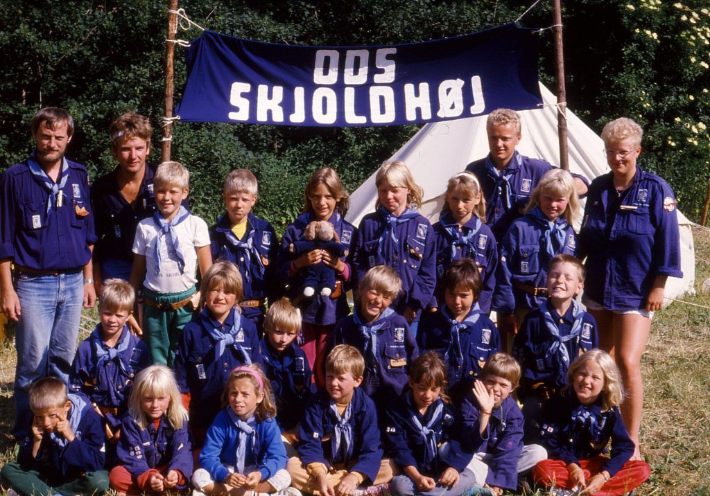 Mads, Jimmy, Erik , Helle og alle Skjoldhøj Mini spejderne på Forlev spejdercenter i 1986