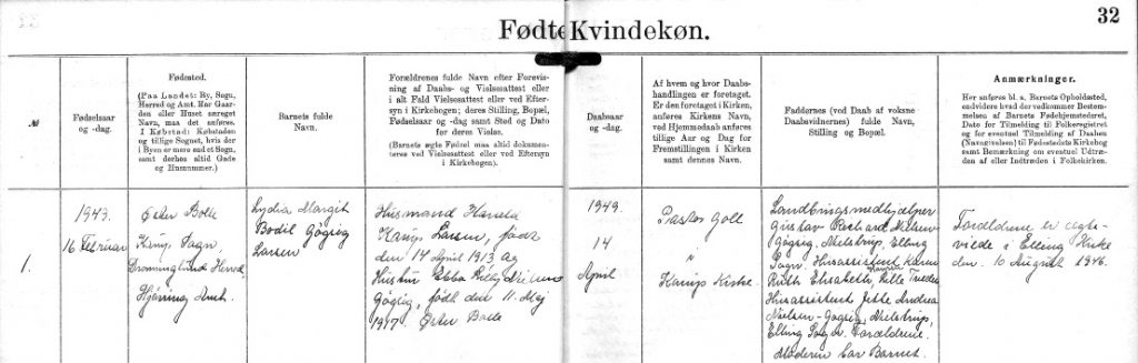 (H16). Lydia Margit Bodil Gøgsig Larsen (f. 16. februar 1949 – d. ?. ? ?) blev d. ?. gift med ?? Sørensen (f. ??. ? ? – d. ??. ? ?).