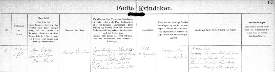 Minna Danielsen blev født den 18. juli 1932 på ”St. Gøgsig”. Hun er datter af Gaardbestyrer Richard Peter Danielsen fra Rødby og Jenny Nikoline Gøgsig fra Tuen ved Tversted.