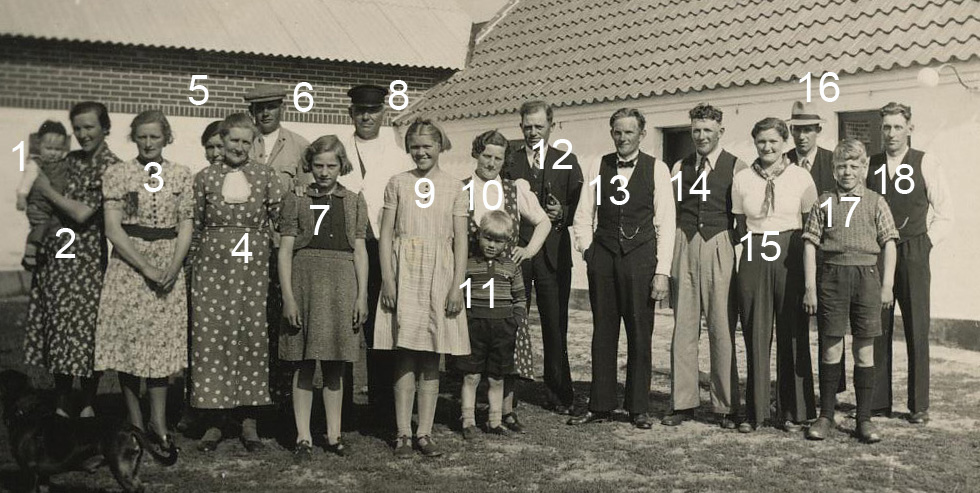 På et familiefoto fra gården ”Lille Gøgsig” i Tuen er Minna med som nr. 7. og Niels Regnar nr. 17. Nummer 5, 6 og 9 er Nielses plejeforældre Sinne, Herman og deres datter Gudrun fra gården “Lille Gøgsig”. Nummer 3 og 14 er Minnas plejeforældre Alma og Tage fra Rammelhøjhus i Hørmested.