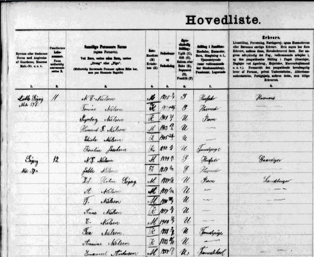 Ved folketællingen i 1906 er der ingen beboere, af Nielsen slægten på hverken “Store Gøgsig eller “Lille Gøgsig” der bærer efternavnet Gøgsig ud over Dinus Johannes Holm Gøgsig, der året før havde erhvervet eneretten til at bruge navnet Gøgsig som efternavn.