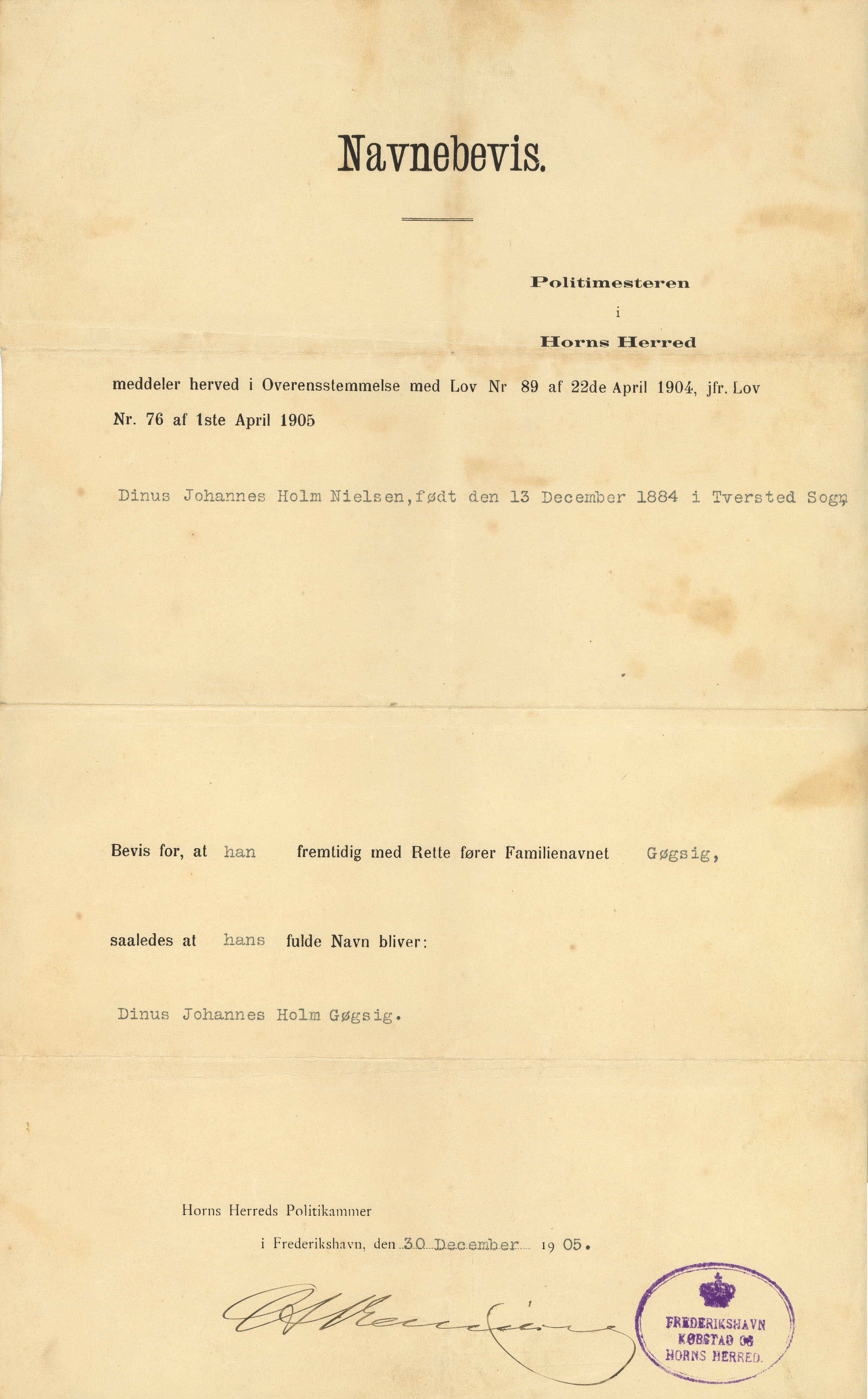 Slægtsnavnet Gøgsig efter ændring af navneloven i 1904.