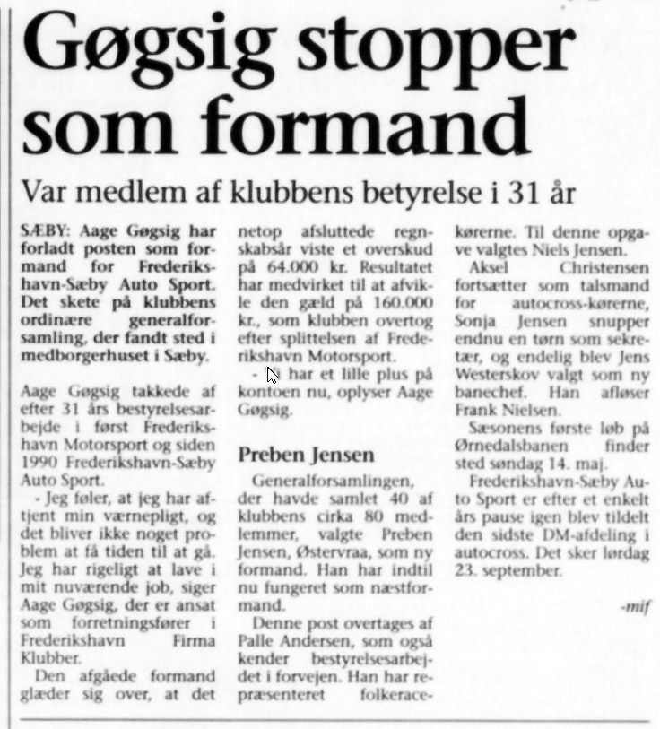 Aage Gøgsig udtræder af bestyrelsen, men Gøgsig familien er stadig repræsenteret med Markus Leander Gøgsig.
