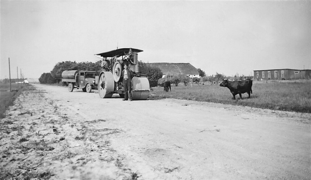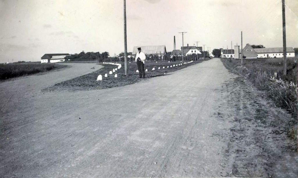 Tuenvejen set fra vest. Niels Christian ved den nye grusvej udenom Tuen (Tuenvejens fortsættelse til Aalbæk). Niels Christian kæmpede hårdt for at få vejen gennemført.