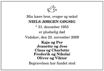 (A30). Niels Jørgen Nielsen-Gøgsig  (f. 31. december 1955 – d. 23. november 2009)