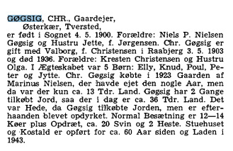 Christian Nielsen-Gøgsig og Valborg bor på gården ”Østenkjær” sammen med deres 4 børn: Elly, Knud, Povl og Harry (bruger kun mellemnavnet Peter). Jytte er endnu ikke født.