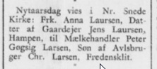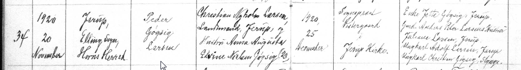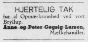 Ifølge folketællingen den 1. februar 1921 ser det ud som om, Anna og Christian bor hver for sig, selv om de blev gift i oktober 1920 (2 måneder tidligere). Anna og den nyfødte Peter Gøgsig Larsen bor hos enke Jette Gøgsig i Jerup, og Kristian Nyholm Larsen bor hjemme hos forældrene (Anders Peter Larsen og Juliane Larsen).