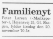 Skagen Avis 1990-11-17 Peter Larsen 70 år.