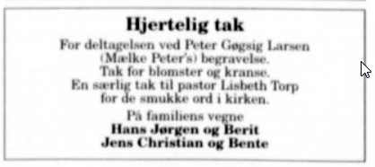 Tekstforfatter: Mads Gøgsig 2020 (Kilde: Primært baseret på Kurt Villi Jensens Video ”Peter Gøgsig Larsen fortæller om sit liv” fra den 26. august 2001).