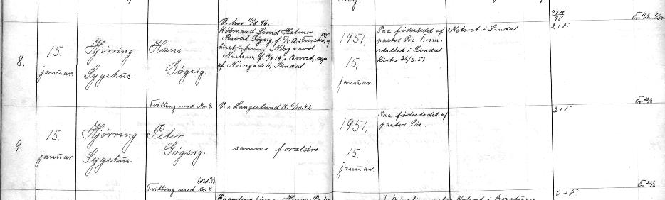 Peter og Hans blev døbt på fødestedet (Hjørring Centralsygehus). Hans blev senere fremstillet i Bykirken i Sindal.