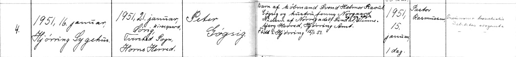 Peter døde på Hjørring Sygehus d. 16. januar 1951.