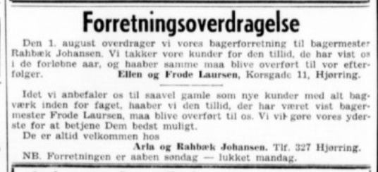 Vendsyssel Avis 1936-10-24 Rahbek fra Taars Køb Odden Mølle – bageriet