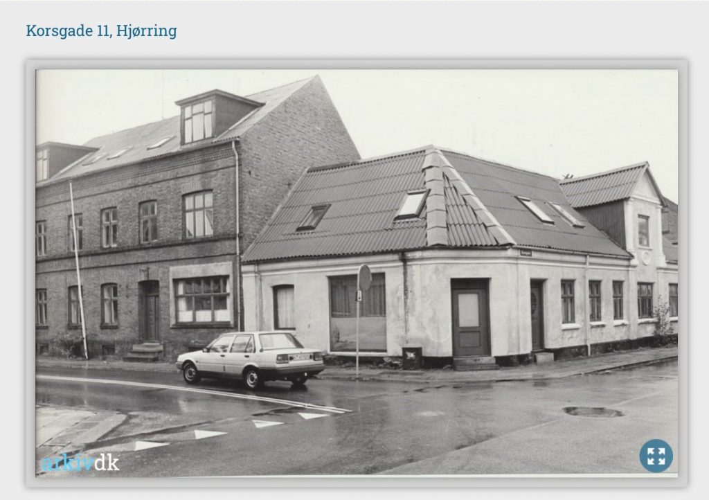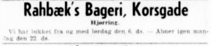 Rahbeks bageri lå i denne hjørnebygningen. Bygningen er nu fjernet for at give plads til en bredere vej.