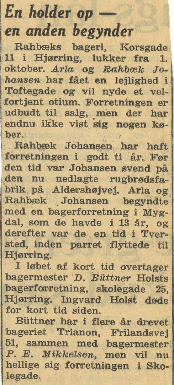 Rahbeks bageri lå i denne hjørnebygningen. Bygningen er nu fjernet for at give plads til en bredere vej.