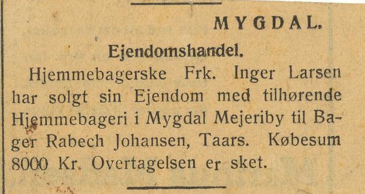 Vendsyssel Avis 1936-10-24 Rahbek fra Taars Køb Odden Mølle – bageriet
