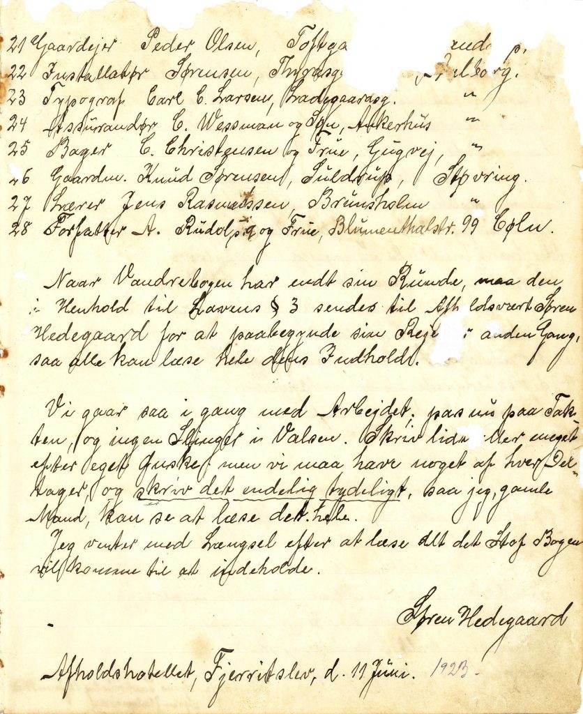 I sin deltagerliste glemte Knud Holsts derimod Julius Nielsen, V. Borup, Tårs, der meldte sig til som en efternøler.