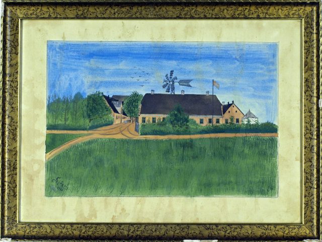 Dette eksemplar har tilhørt Jytte Gøgsig i Tversted, men findes nu på lokalhistorisk forening i Tversted. Akvarellen har haft en ramme.