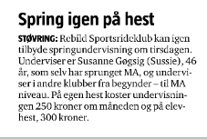 Sussi har altid været glad for dyr og har redet siden hun var 12 eller deromkring. Hun havde en shetlænder (en hest) der hed P. Jensen. Den stod ude ved Ejvin på farfars gård ”Fredensklit”. Der stod den ude i mange år. Medens Kjeld min far var på Havet og fiskede var hesten en gang på græs – på bagsædet af Volvoen. Det var vilde tider dengang.