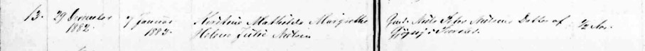 (D00). Kirstine Mathilde Margrethe Helene Julie Nielsen (f. 22. juni 1882 – d. 29. september 1882).