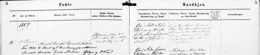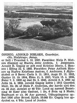 Arnold Osvald Ejner Nielsen blev født d. 1. december 1887 på Gjøgsig i Tversted. Arnolds fødsel og dåb er registreret i Sørig kirkes kirkebog, Hjørring amt. Fik i 1920 18. marts kgl. Bevilling paa Navnet: Arnold Osvald Ejner Nielsen-Gøgsig (VA 357 / 1920).