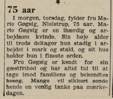 Marie Gøgsig døde 5. marts 1965.