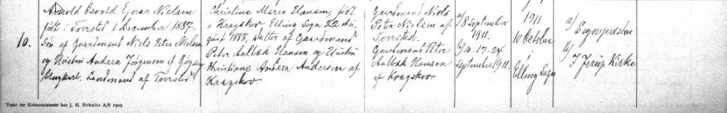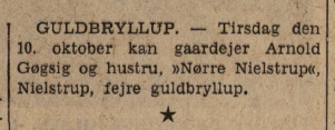 (H00). Arnold Osvald Ejner Nielsen-Gøgsig (f. 1. december 1887 – d. 8. august 1970) blev den 10. oktober 1911 gift med Christine Marie Hansen (f. 22. august 1888 i Elling – d. 5. marts 1965).